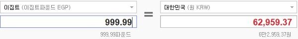 이집트 999.99 파운드는 한국 돈으로 약 63,000원이라는 걸 알 수 있다. 거의 1/3 가격이다.