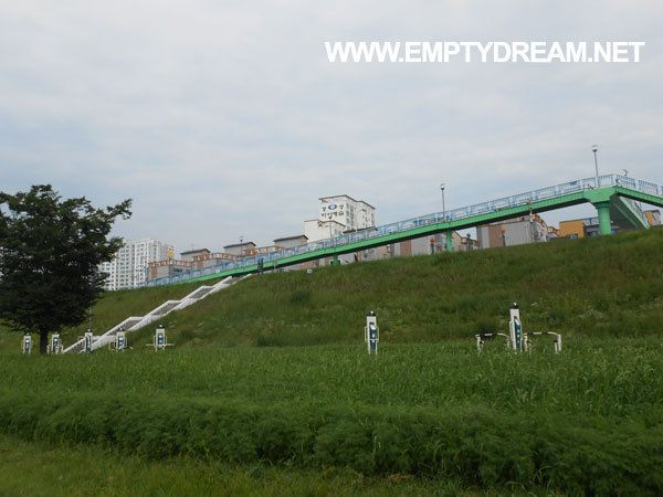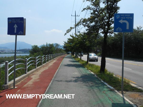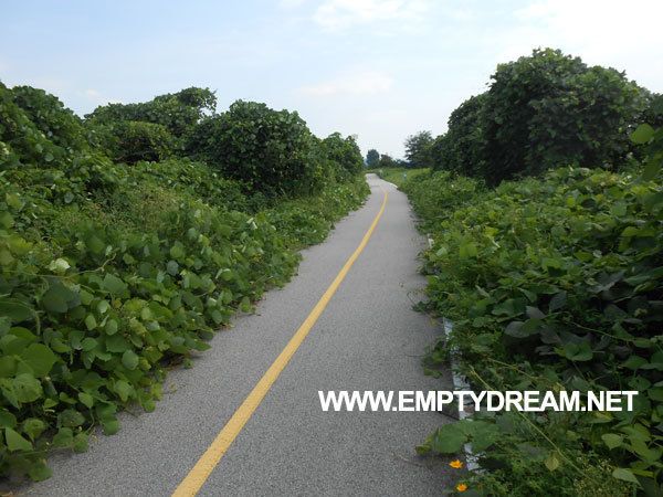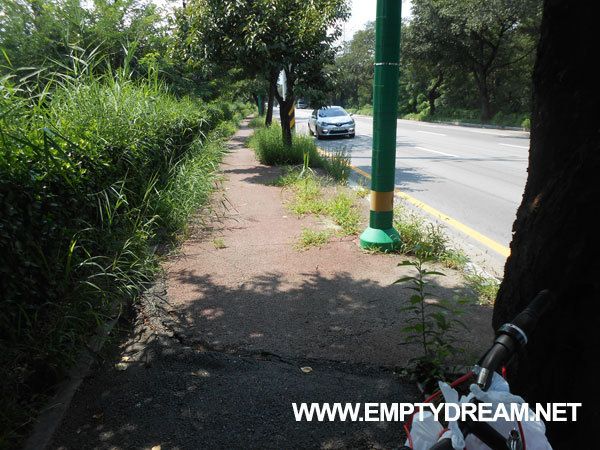 이쪽 자전거길은 관리 안 하는 티가 팍팍 난다. 풀만 우거져 있는게 아니라, 잘 보면 우레탄이 밀려 올라가서 울퉁불퉁하게 돼 있다. 완전히 깨져서 뻥 비어있는 구멍도 있어서 조금만 방심하면 자전거가 부숴질 정도로 충격을 받는다. 한동안 이 구간 전체가 울퉁불퉁해서 오히려 비포장도로보다 못하다.