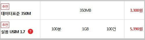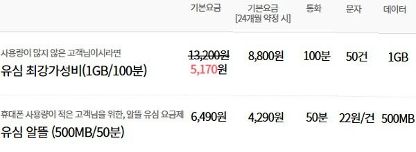 * 이벤트로 나온 요금제들은 가격이 변동되거나 없어질 수 있다.