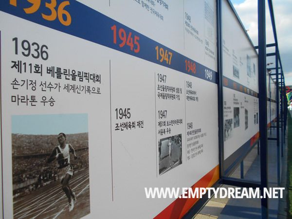 개회식을 보기위해 잠실종합운동장 입구에 들어섰다. 운동장에 들어가서야 행사 분위기를 느낄 수 있을거라 생각했지만, 지하철역 밖을 나서자마자 '제100회 전국체육대회 특별사진전'이 보였다. 여기서 대한민국 체육의 역사와 중요한 장면들을 훑어볼 수 있었다.