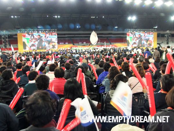 장애인체전 개막식이 이렇게 크고 화려할 줄은 몰랐다. 이번 대회 개막식 규모가 꽤 큰 편이라, 다음 개최지에서 신경이 좀 쓰일 수도 있겠다. 그런데 크고 화려한 것이 초점을 맞추기보다는, 이런 기회에 장애인들이 보고싶어하는 공연을 보여주는 축제의 장으로 만드는 것도 좋지 않을까 싶다. 선수단 외에 일반 관람객 중에도 장애인들이 많았고, 그들도 함께 싸이의 공연을 보면서 즐거워하는 모습을 보면서 그런 생각이 들었다.