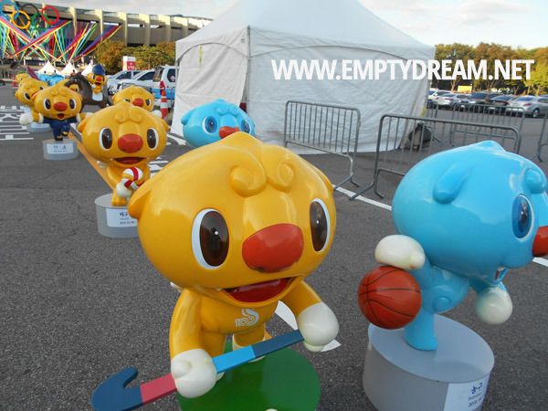 각 구별 홍보부스가 끝나는 곳에서 서울관광재단 홍보부스가 있는 곳까지는 대회 마스코트 모형이 전시돼 있었다. 마스코트는 두 가지인데, 모두 '해치' 캐릭터를 기본으로 만들었다.