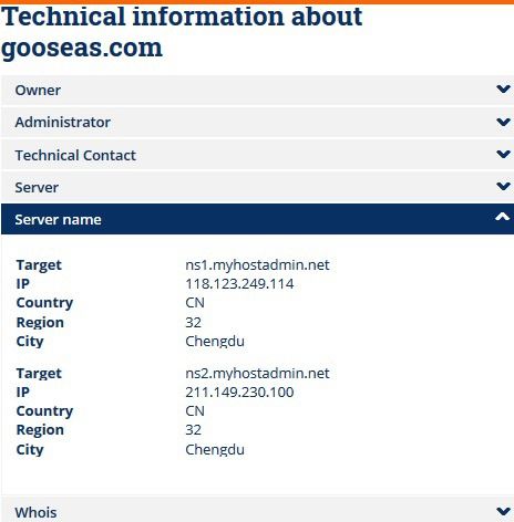 또 조금 더 내려가보면, 이번엔 기술적인 내용들이 나온다. 캐나다 구스를 판매하는 쇼핑몰인데 서버가 중국에 있다.